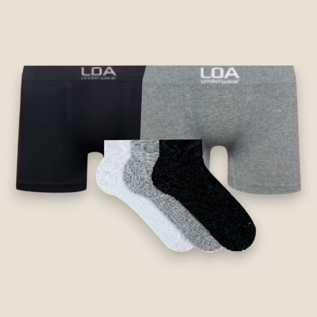 Kit 2 Cuecas Boxer e 3 Meias Soquete LOA Original em Microfibra Sem Costura