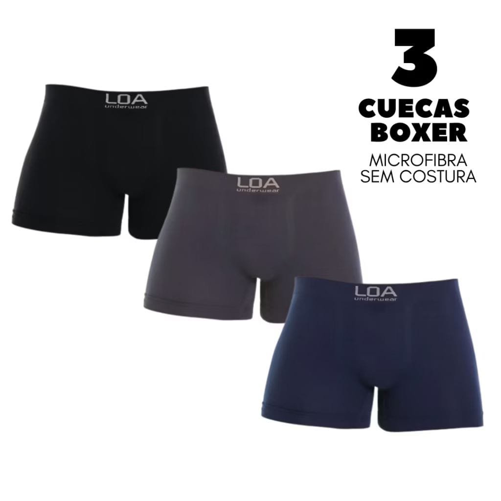 Kit 3 Cuecas Boxer Sem Costura LOA ORIGINAL em Microfibra